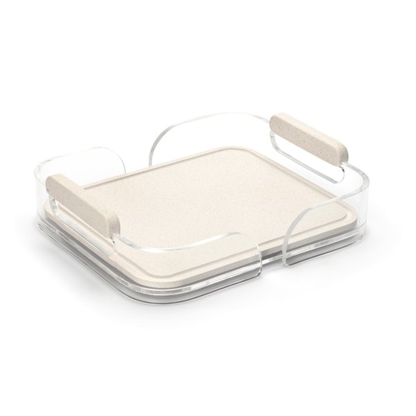 Design minimalista com presença marcante. A Bandeja M – Oslo une o brilho do Acrílico Cristal ao acabamento sofisticado do VogueStone, em um tom warm gray que traduz elegância contemporânea.