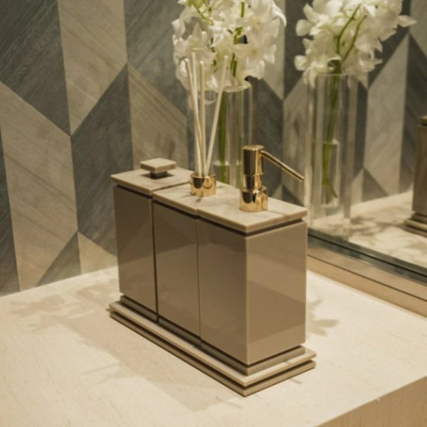 Com design refinado e acabamento impecável, ela acomoda com praticidade e estilo os itens essenciais do lavabo, como difusores e sabonetes líquidos. Seu formato retangular mais estreito é ideal para bancadas menores ou composições lineares, organizando e protegendo sem abrir mão da estética.
