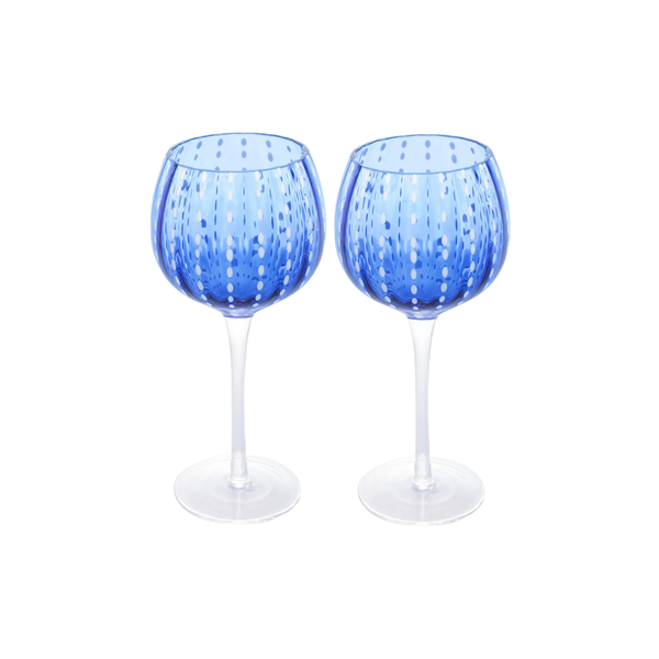 Produzidas em vidro de alta qualidade, as taças exibem coloração azul translúcida e design elegante, com hastes finas e bojos amplos que valorizam o aroma e o sabor dos vinhos.