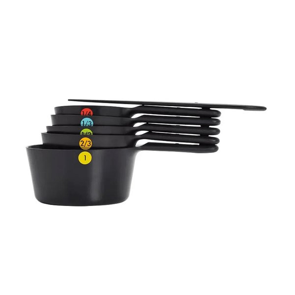 Os copos de medição de 6 peças se encaixam para que você possa retirar apenas o que precisa, deixando o resto perfeitamente unido. As alças têm punhos antiderrapantes macios e confortáveis e marcações de medição permanentes.