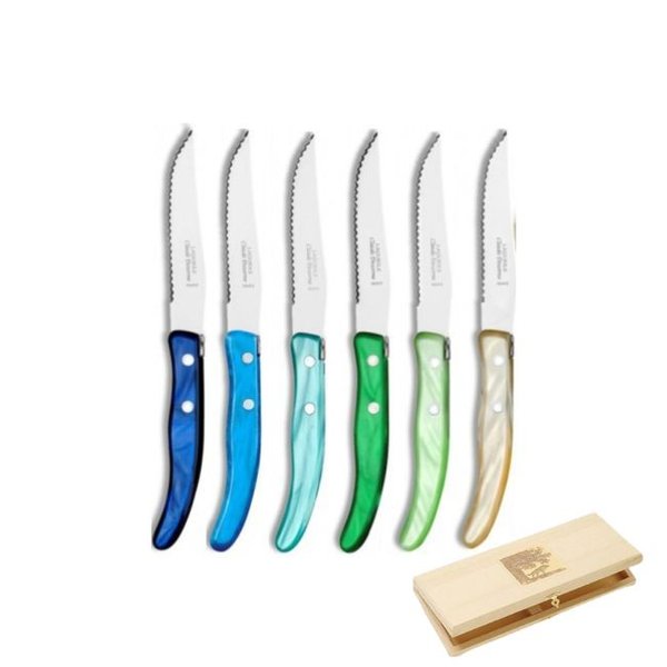 Conjunto 6 Facas para Churrasco Berlingot Cabo Colorido Azul e Verde Laguiole