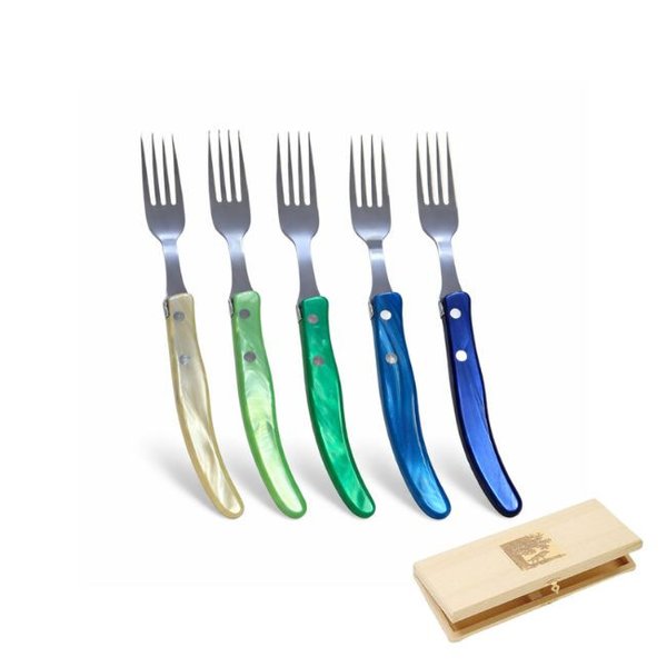Conjunto 6 Garfos para Churrasco Berlingot Cabo Colorido Azul/Verde Laguiole