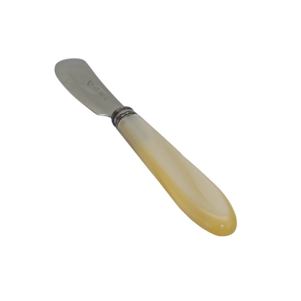 Espátula para manteiga da Linha Vendome da marca italiana EME (sigla de Egidio Mori Elio), fabricada em aço inoxidável 18/10 com acabamento polido e cabo em acrílico marfim com efeito perolado e pontas arredondadas. A ponteira em aço finamente cinzelada confere um toque clássico, enquanto o cabo perolado garante conforto e estilo à mesa.