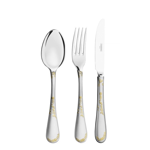O Faqueiro Renascença da Tramontina é uma verdadeira obra-prima, desenvolvido com detalhes em ouro 24K e acabamento em aço inox com contrastes de brilho e fosco. Suas peças trazem a harmonia perfeita entre funcionalidade e requinte, ideal para ocasiões especiais ou para compor um enxoval refinado.