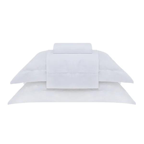 A combinação de tramas valoriza o brilho natural do tecido e oferece visual elegante e contemporâneo. O sobrelençol conta com acabamento em ponto ajour, o lençol com elástico se ajusta a colchões de até 40 cm de altura e as fronhas com 3 abas garantem um caimento refinado.