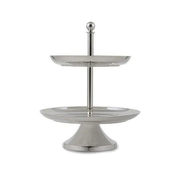 O Porta Petit Fours Duplo Médio Sheffield Plate é uma peça elegante e funcional para servir doces, mini-sanduíches e petit fours em sua mesa. Produzido em aço inox com acabamento “sheffield plate” (prateado), possui dois andares destacáveis, permitindo organizar diferentes tipos de delicacies de forma prática e sofisticada. Ideal para chá da tarde, eventos, buffets e decoração de mesas postas.