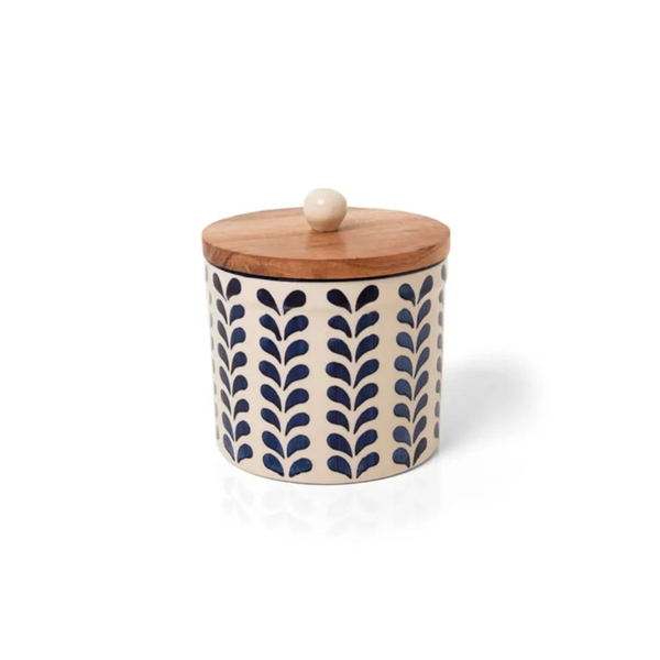 Pote com Tampa Versailles Iris 13x12cm Cerâmica e Madeira – Copa & Cia