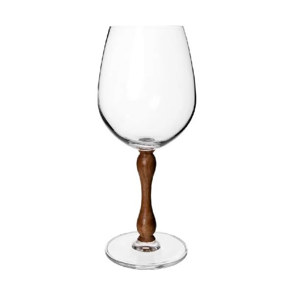 Com design exclusivo, cada taça se destaca pela haste em madeira natural, que adiciona textura, aconchego e um toque contemporâneo ao servir.